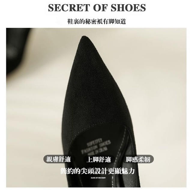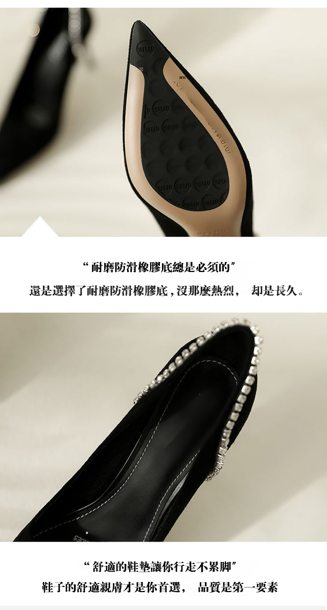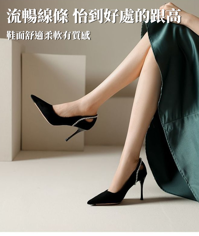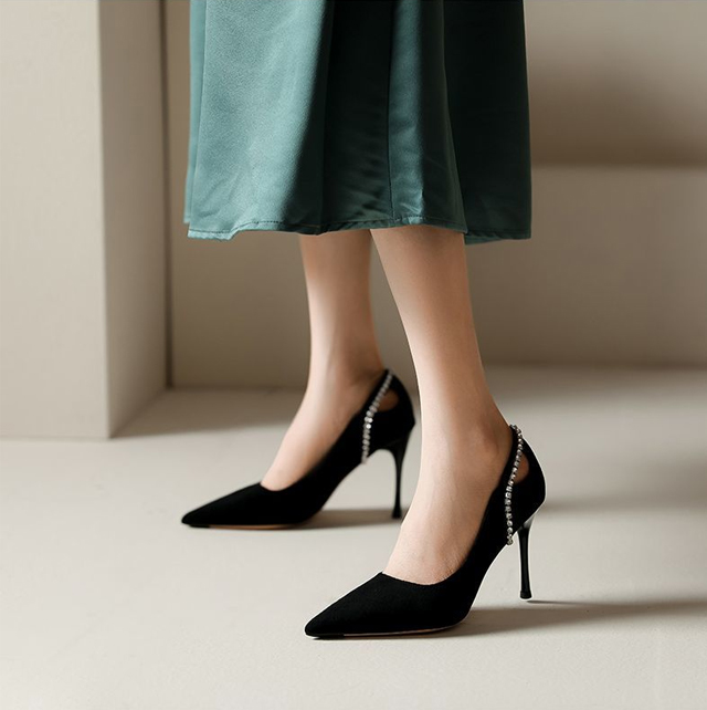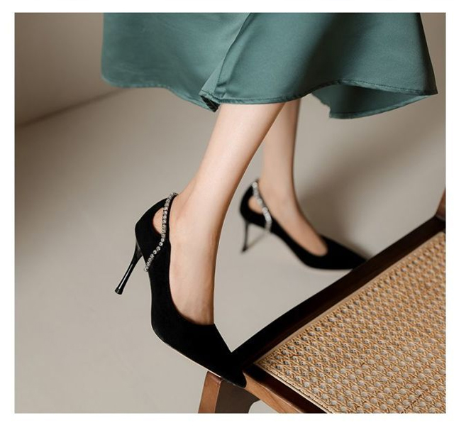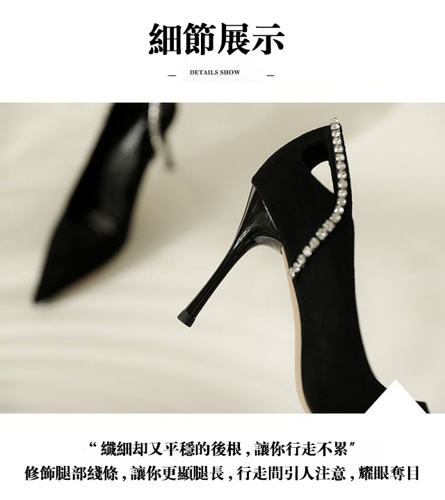 尖頭絨面水鑽鏤空高跟鞋